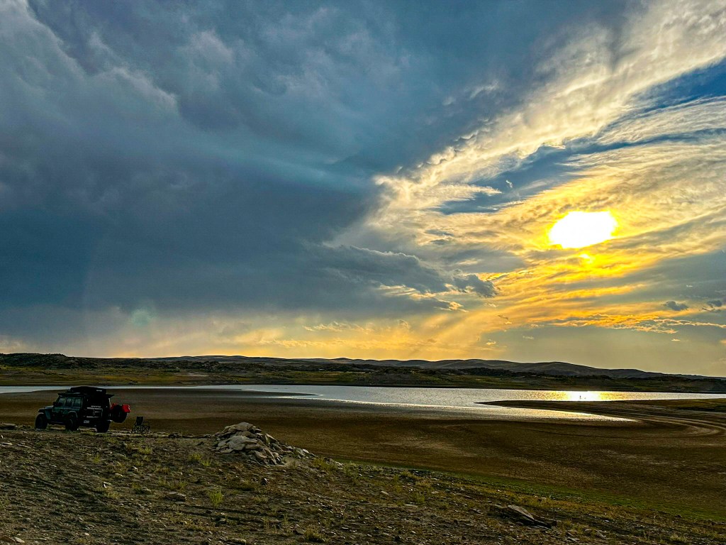 Turning off the highway and onto the faded two lane road, we went further north, away from civilization. About 20 miles further, the pavement turned to dirt and the hunt for a campsite began. The plan was to head into the hills looking over the reservoir for the first night and then find a spot on the water for the second.