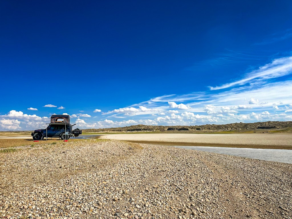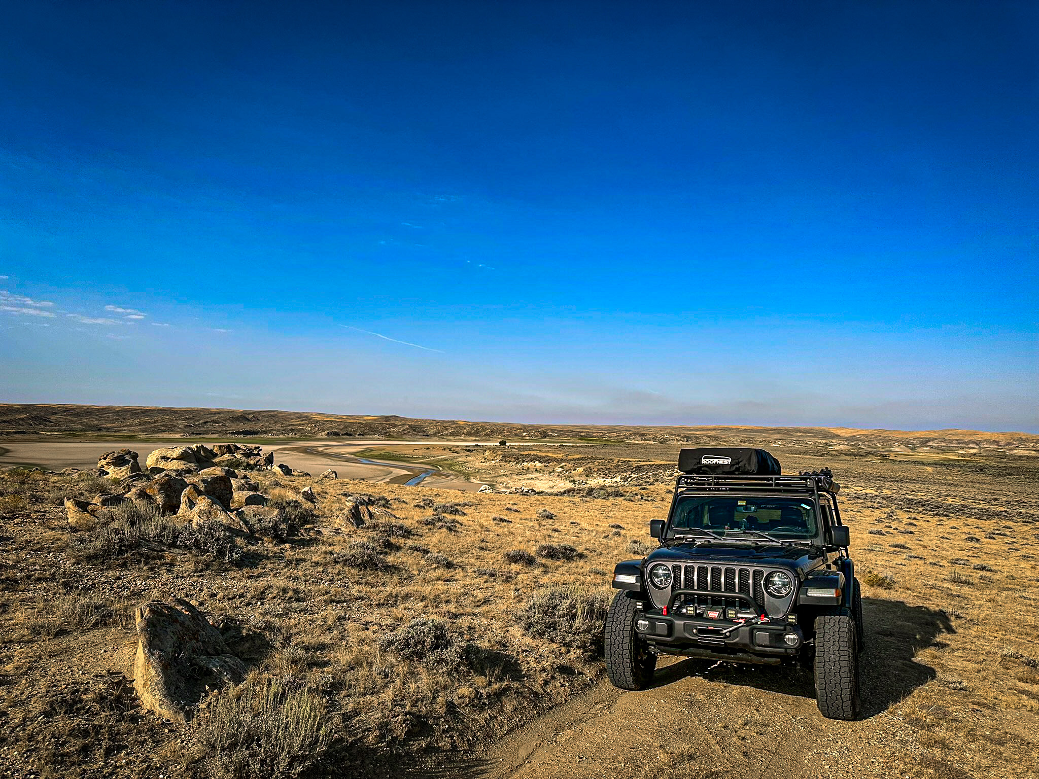 As we drove away from the campground, solitude surrounded us! The tire tracks had disappeared and it was just Chili and I, and Freyja (my Jeep), driving across the desolate, expansive and untouched terrain!