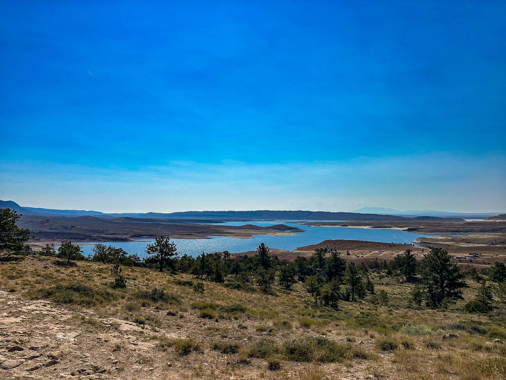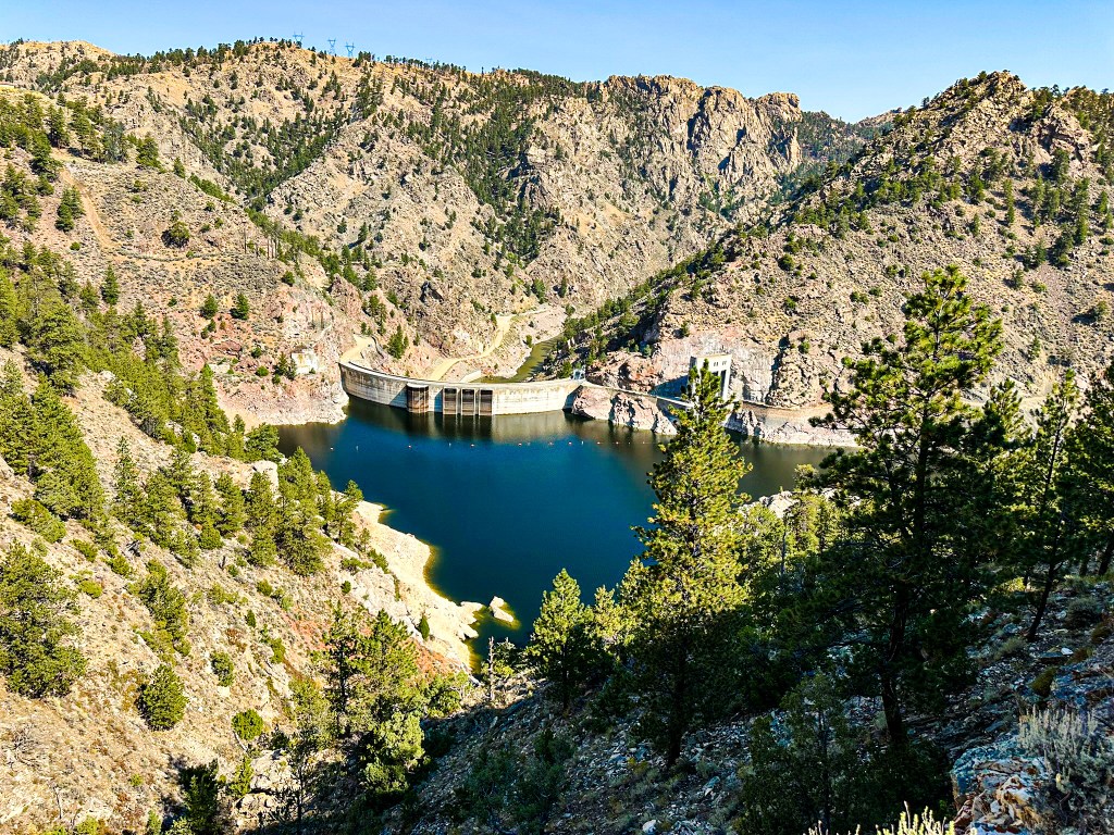 The road curved around through a canyon and up to an overlook of the reservoir and dam. There was a state park on this side with three shoreline campgrounds. While much busier than the other side, they were only at about 30% occupancy. Even with the RV’s and a few SxS’s, there was still some peace and quiet.