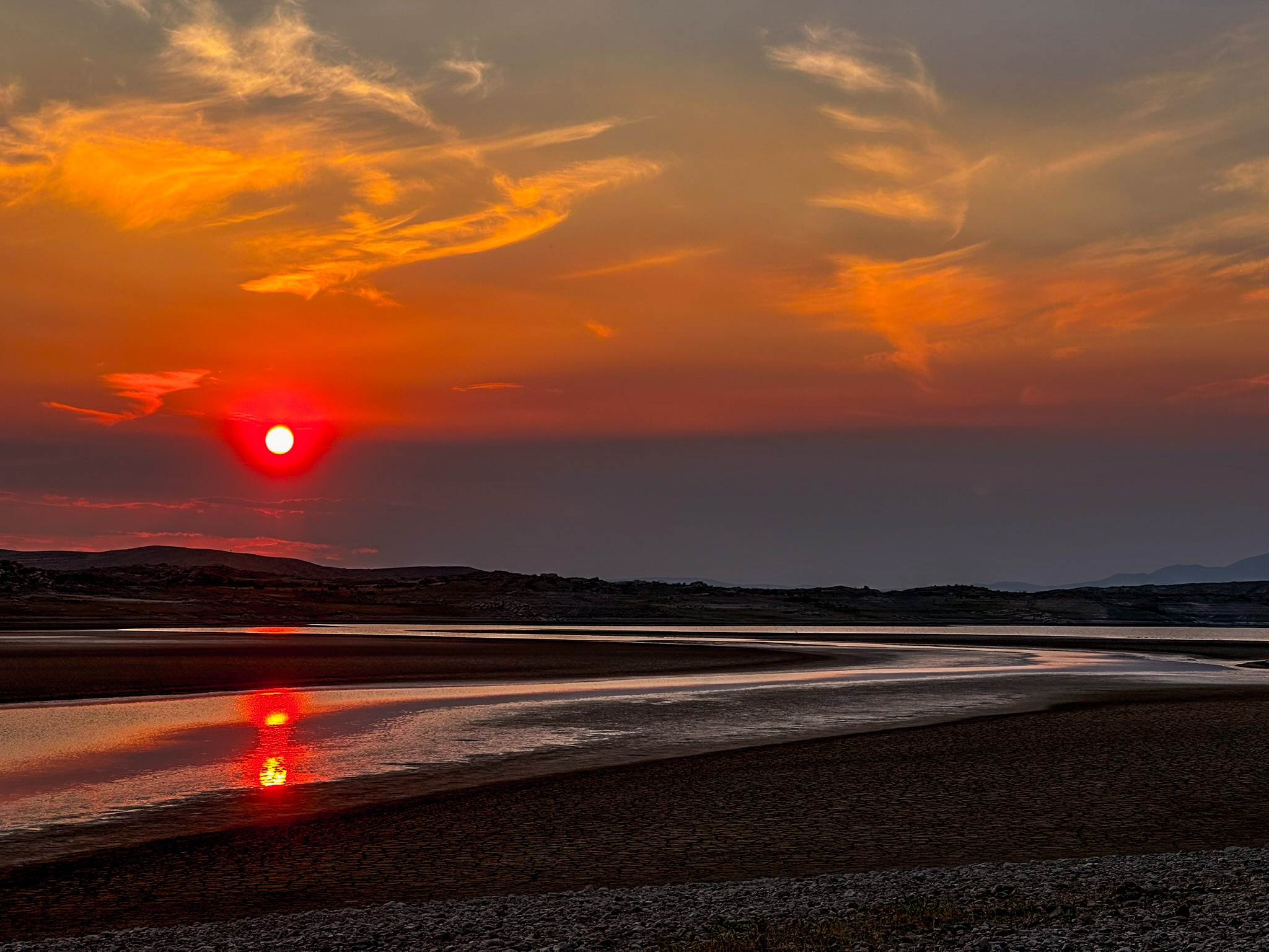 After dinner, we sat by the river, listened to music and enjoyed the sunset. With all the summer wildfires, we were treated to yet another gorgeous, red sunset.